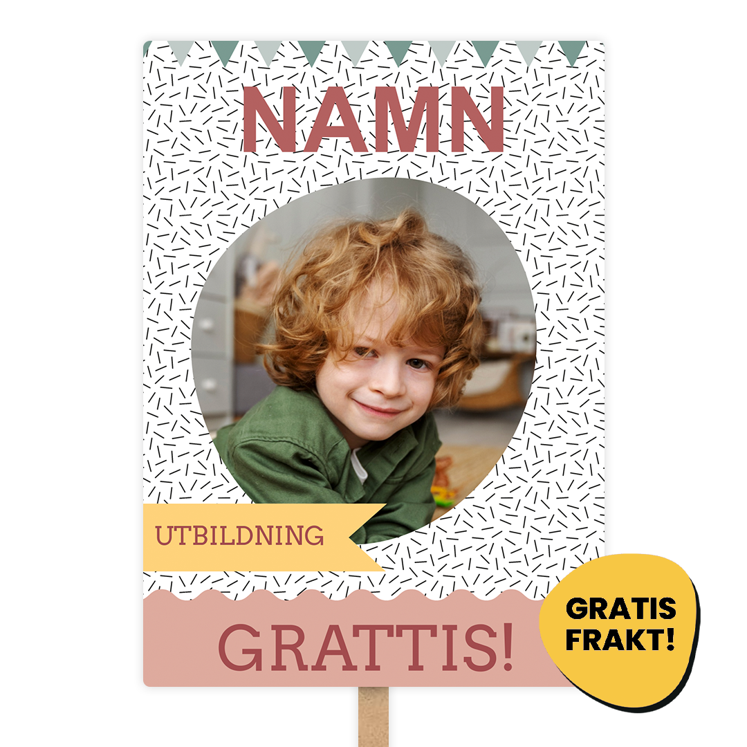Ett studentplakat som är både kul och enkelt att fixa ♥ Beställ ditt plakat direkt från mobilen eller datorn – smidigt och snabbt. Det enda du behöver göra är att välja en fin bild, ladda upp den i den mall du gillar bäst och komplettera med den text du vill ha med. Vanligtvis skriver man in studentens namn och utbildningsprogram, men det bestämmer du själv. Plakaten trycks i standardstorleken 50 x 70 cm och levereras tillsammans med pinne. Pinnen fästs enkelt på baksidan med den dubbelhäftande tejp som medföljer. Våra plakat har dessutom rundade hörn – en extra trygghet när det är mycket folk i rörelse! Billiga studentplakat – precis som det ska vara För oss är det självklart att ett studentplakat inte ska kosta för mycket. Bläddra bland våra produkter, välj den design som passar dig bäst och få både bra pris och snabb frakt. Studentplakat: Skapa en oförglömlig skylt till din studentdag Därför betyder studentplakat så mycket Studenten är en unik tid i livet – ett avslut på en resa och starten på nästa. Studentplakatet har blivit en stark tradition som lyfter känslan av stolthet och glädje. Med personliga bilder och kärleksfulla hälsningar blir det ett minne för livet, lika självklart som studentmössan. Därför ska du välja oss Hos oss får du en enkel och personlig upplevelse när du skapar ditt studentplakat. Vi vet hur viktig den här dagen är och ser alltid till att leverera hög kvalitet som motsvarar dina förväntningar.