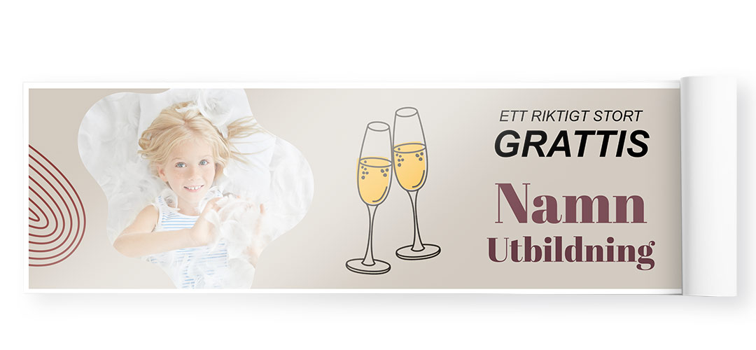 Vår studentbanderoll är ett självklart val för dig som vill ge studenten en personlig och festlig upplevelse att minnas livet ut. Beställ din studentbanderoll idag och gör examensfirandet till något alldeles extra!