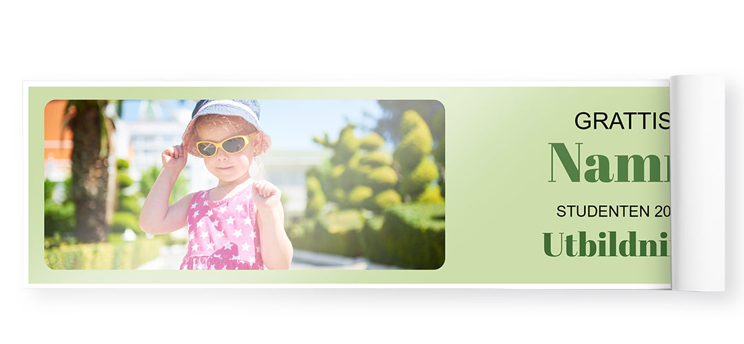 Vår studentbanderoll är ett självklart val för dig som vill ge studenten en personlig och festlig upplevelse att minnas livet ut. Beställ din studentbanderoll idag och gör examensfirandet till något alldeles extra!