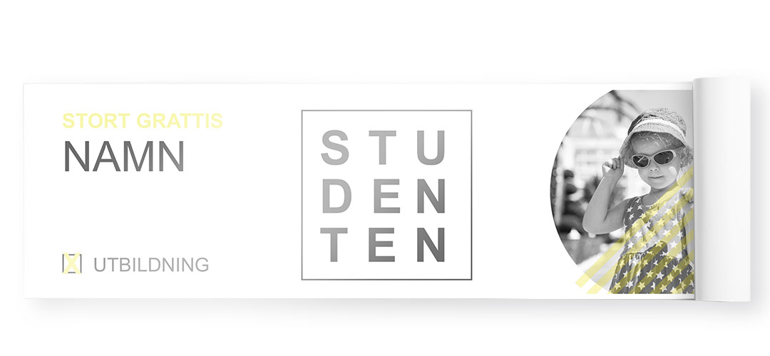 Vår studentbanderoll är ett självklart val för dig som vill ge studenten en personlig och festlig upplevelse att minnas livet ut. Beställ din studentbanderoll idag och gör examensfirandet till något alldeles extra!
