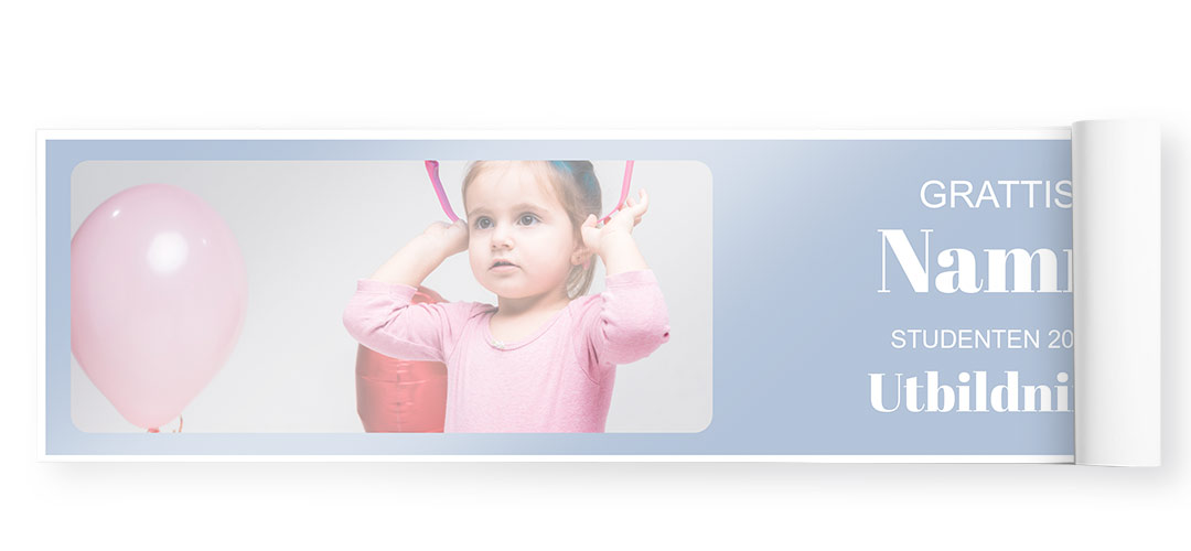 Vår studentbanderoll är ett självklart val för dig som vill ge studenten en personlig och festlig upplevelse att minnas livet ut. Beställ din studentbanderoll idag och gör examensfirandet till något alldeles extra!